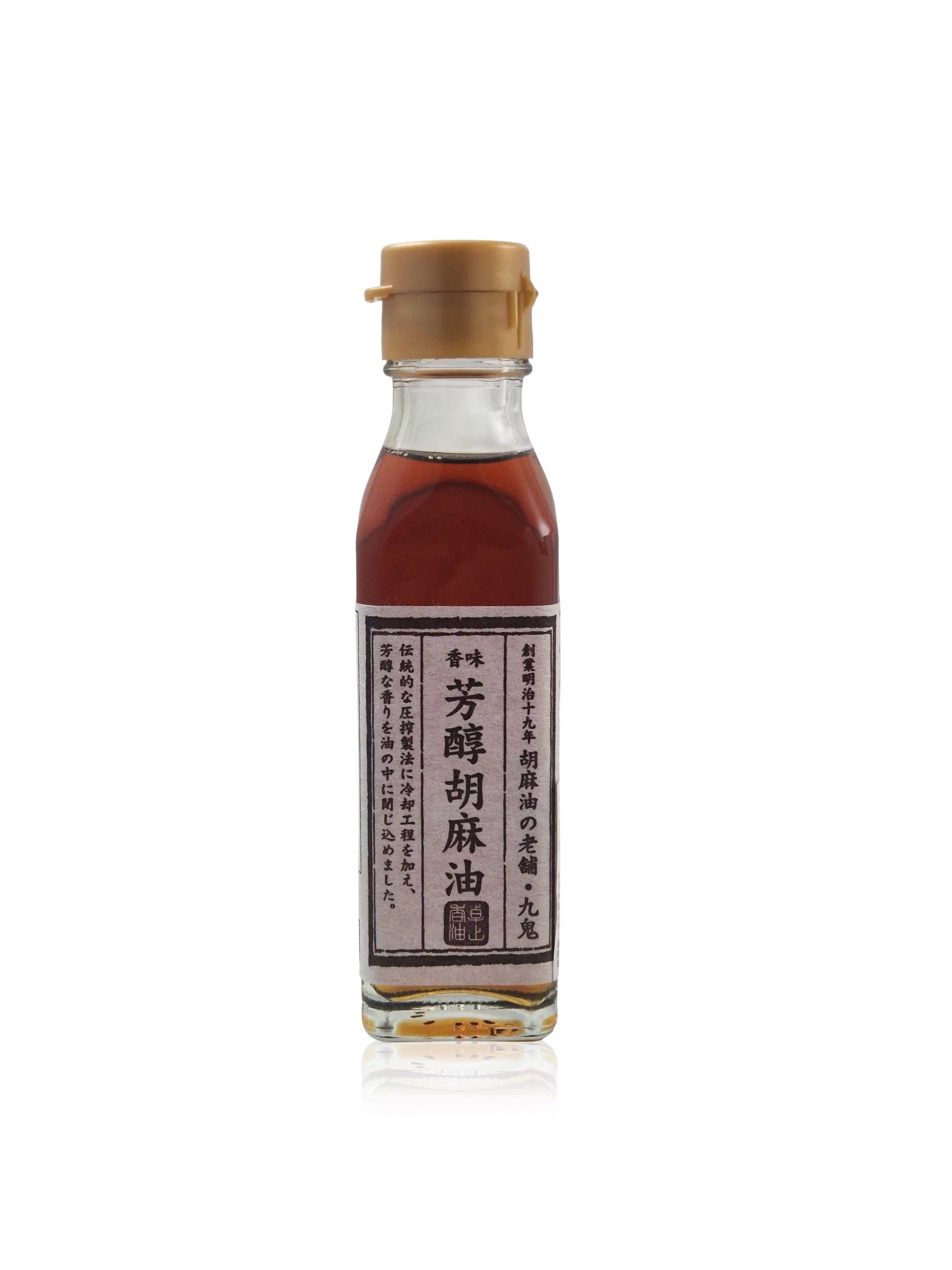 Högklassig japansk sesamolja. Hojun (full bodied) innebär nötaktig doft, intensiv smak som är helt utan bitterhet. Den förhöjer men tar aldrig över.