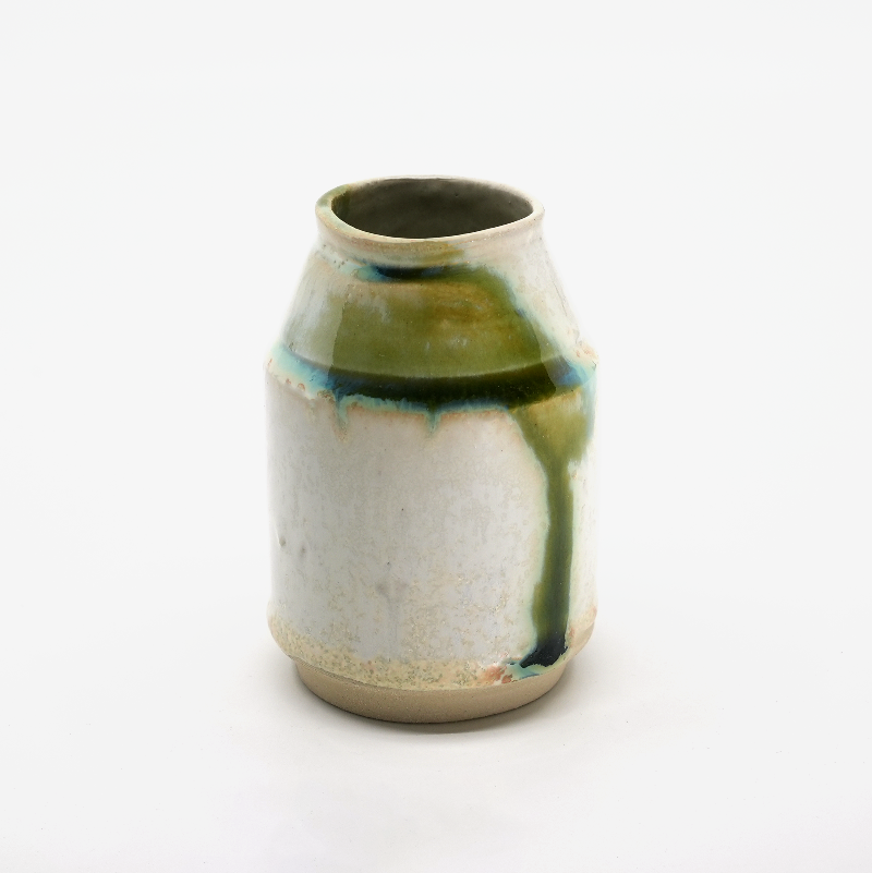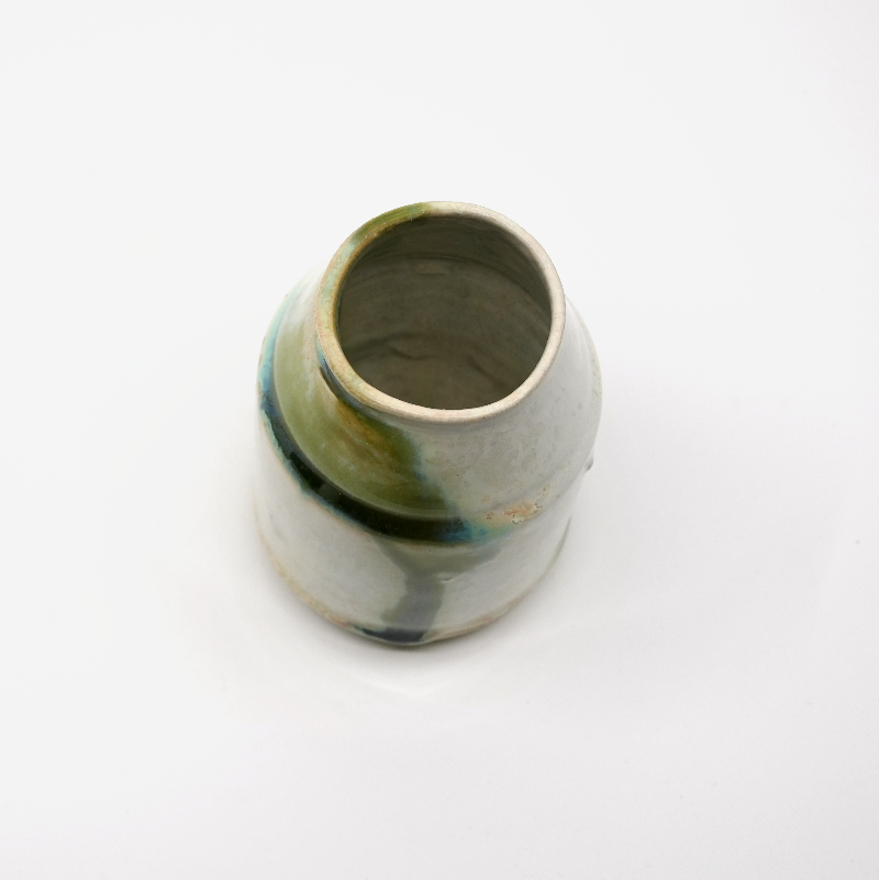 En vas i glasyr Mizu – grönvit med mörkare stråk, som vatten i rörelse.